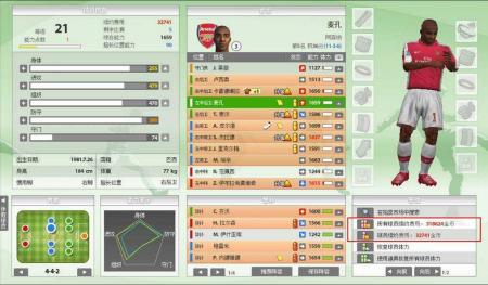 如下图,球队中的高综合能力值的球员比比皆是,所有球员的续约费用就会较高。麦孔一个人的续约费就要32741金币哦!