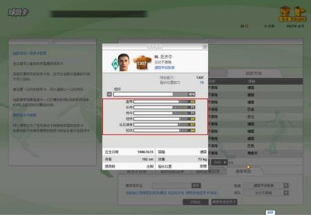 这名前锋的综合能力虽然不是很高,但他的射门精度和力量属性很不错哦